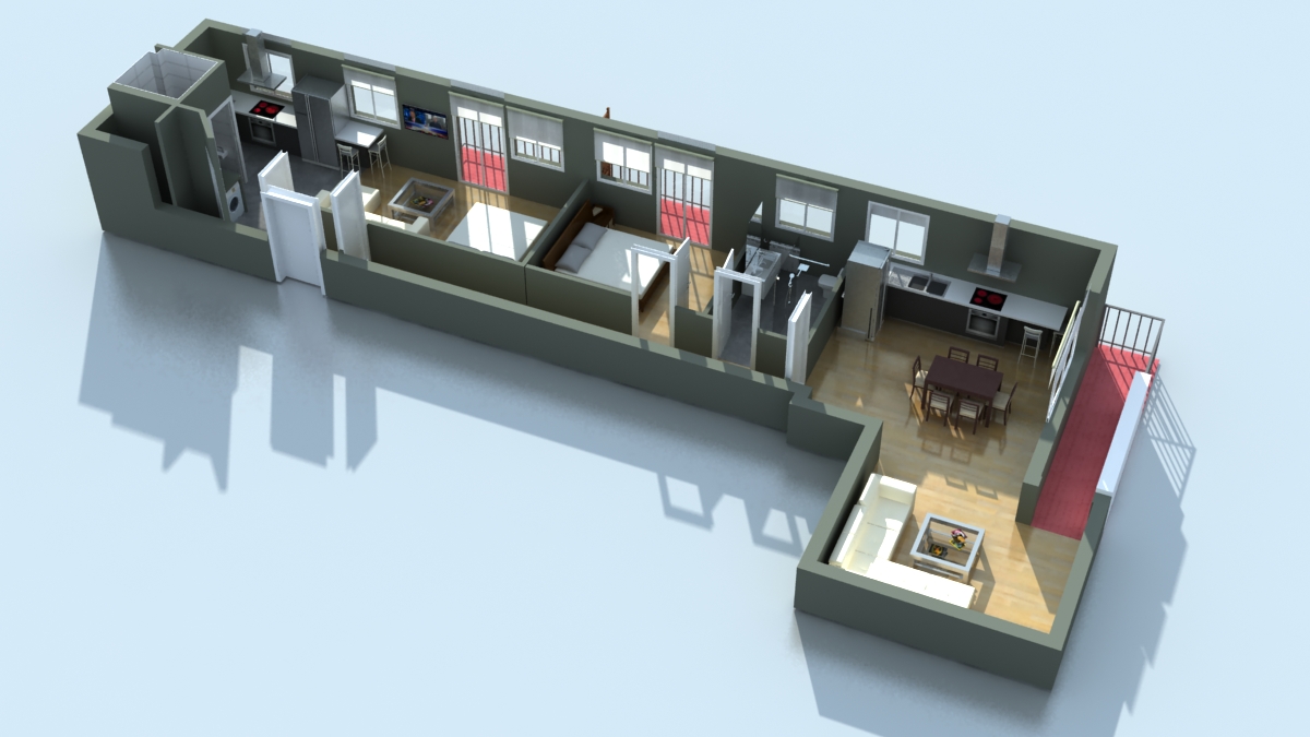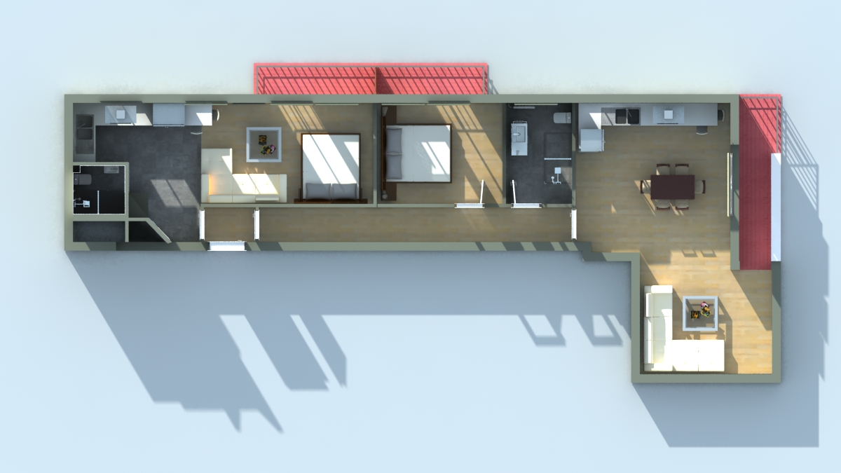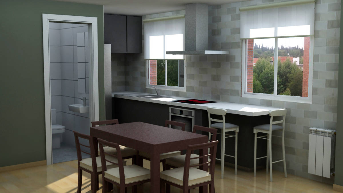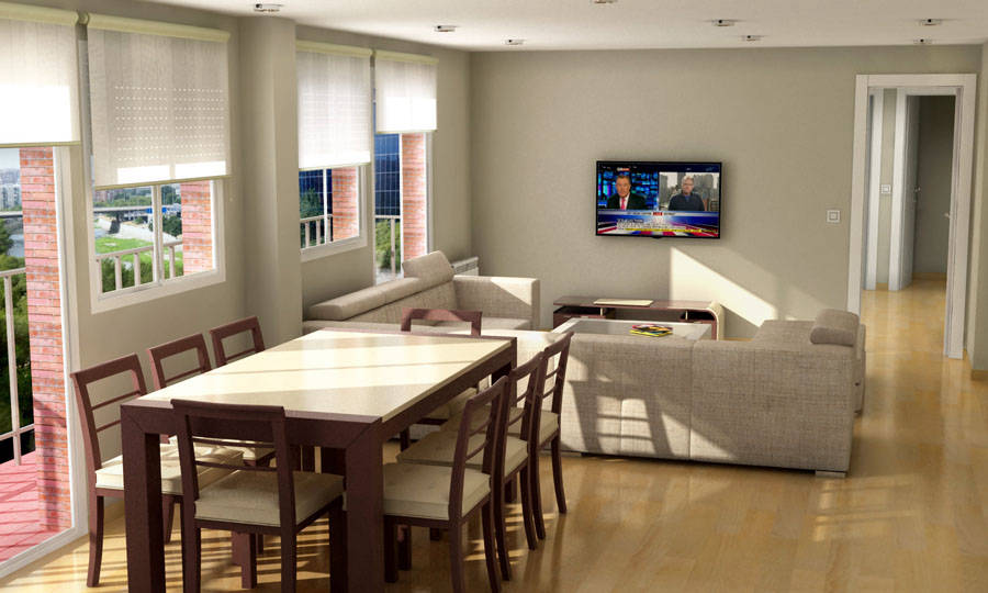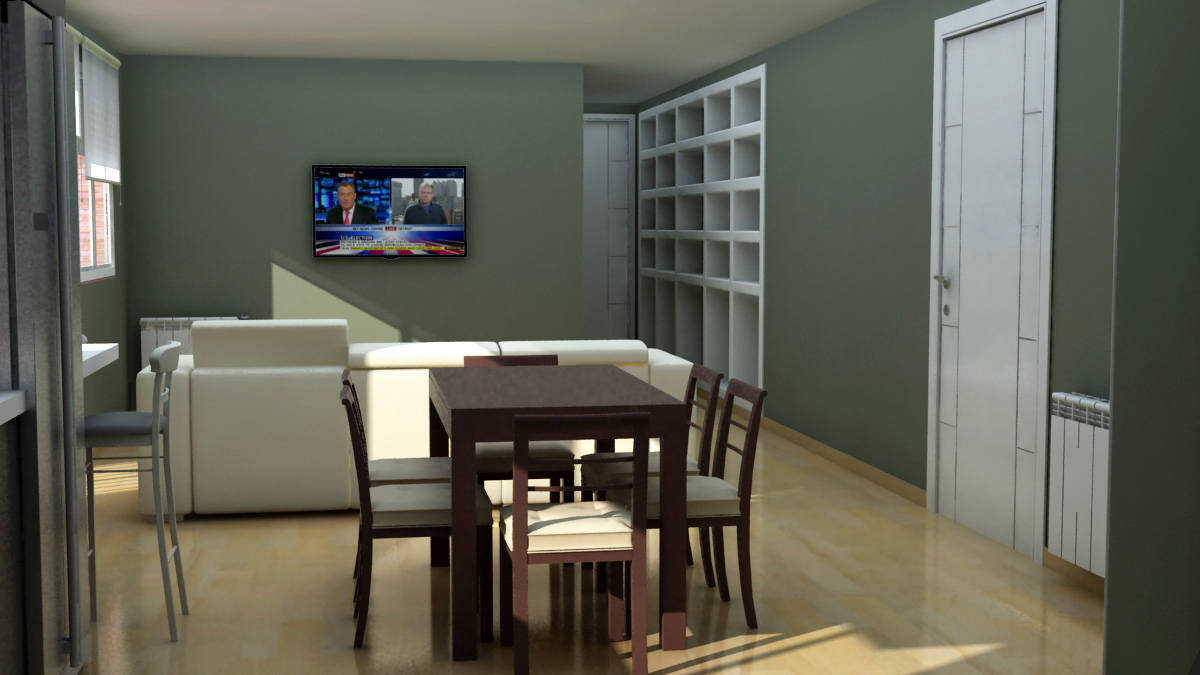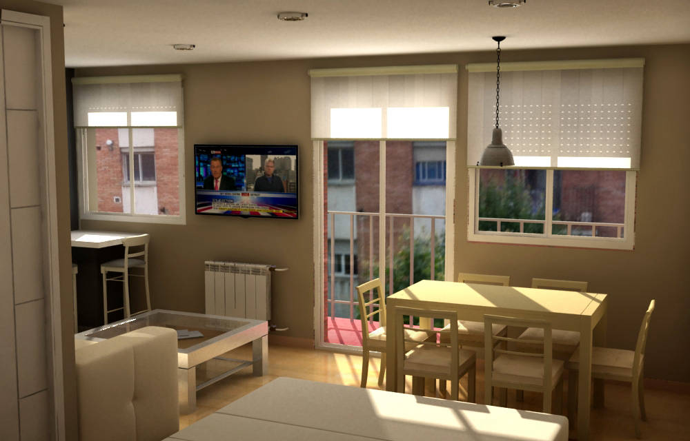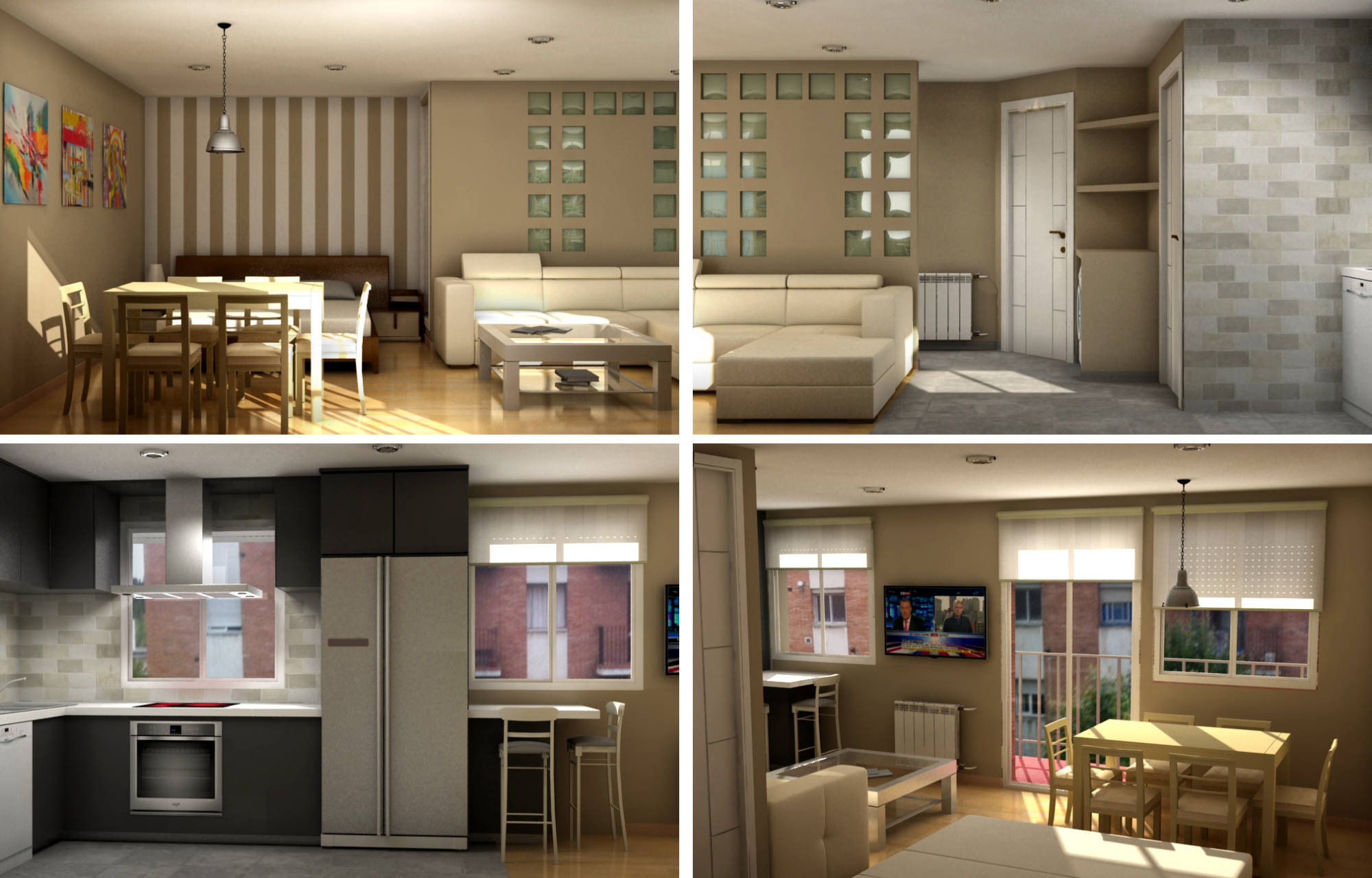 use of virtual images to renovate a two level Flat in Madrid. Convert two joined flats in two, one big one with two levels, and a small one,