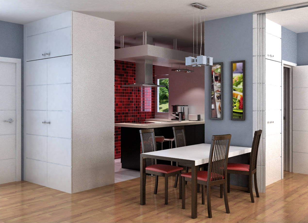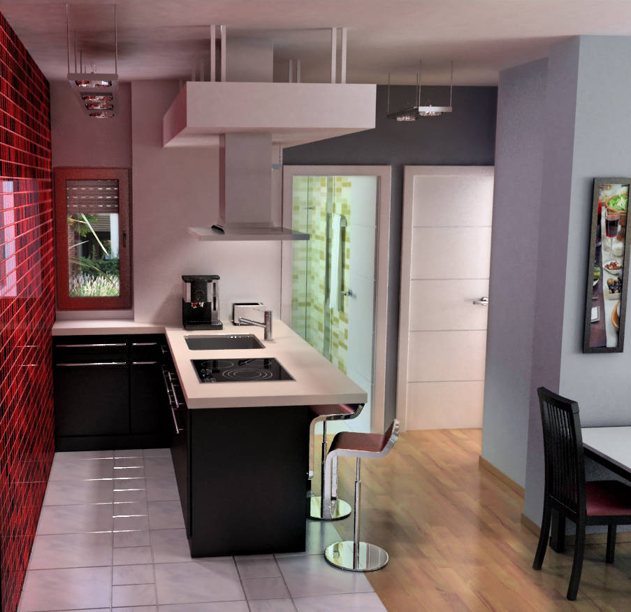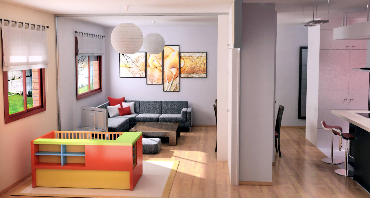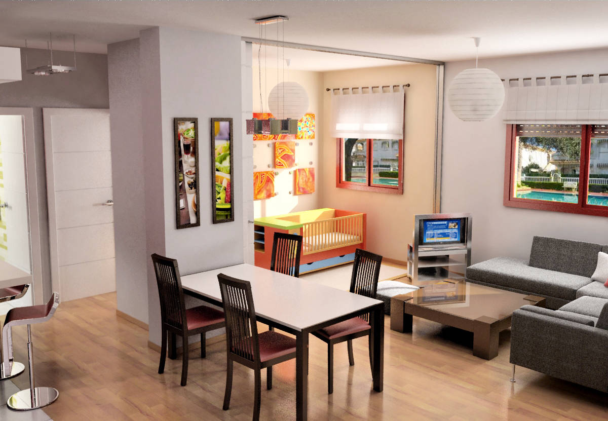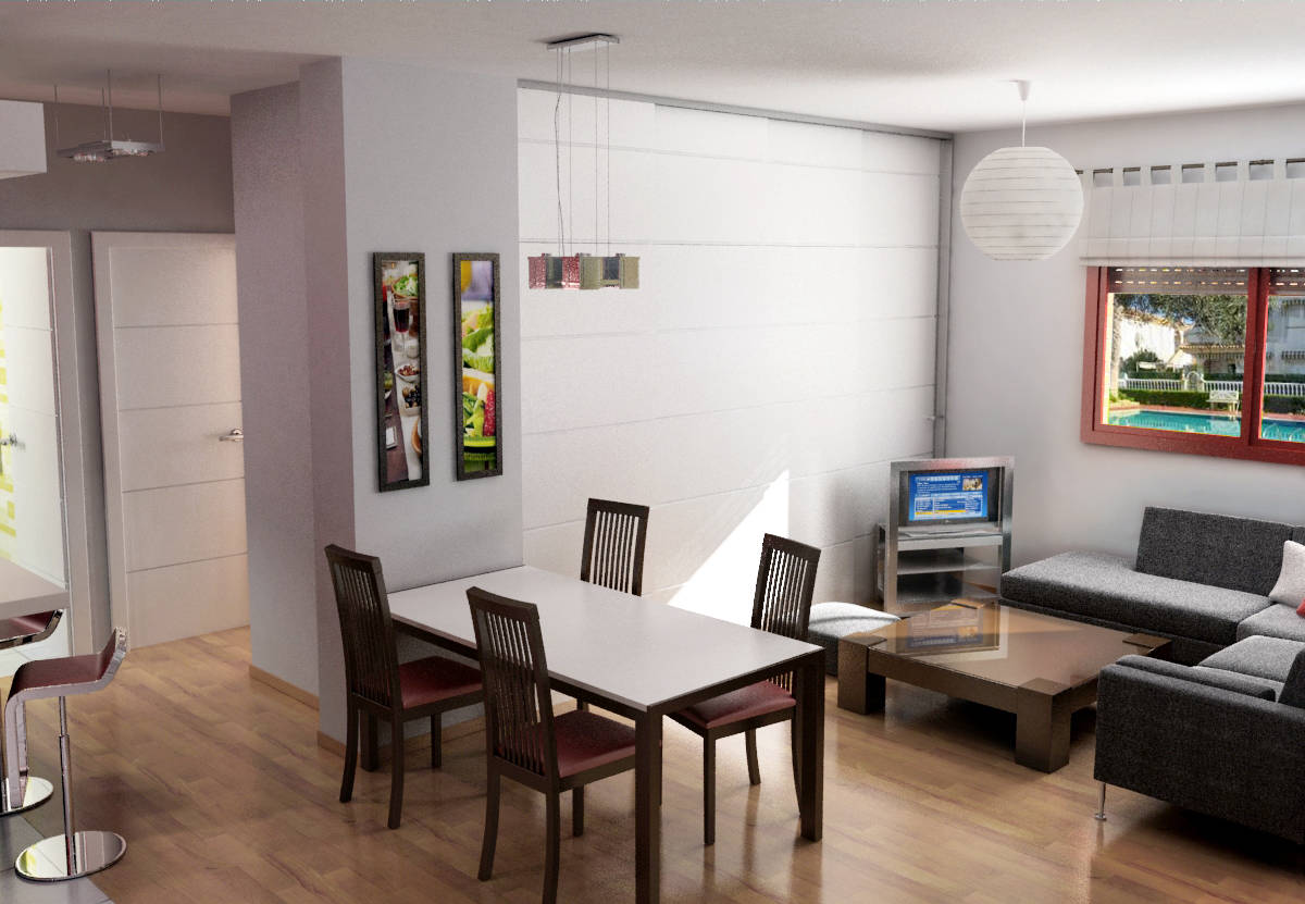 use of virtual images to renovate a flat in Madrid. Redesign of a small two bedroom flat to convert it in a more open one bedroom flat, with more spacious living room and kitchen.