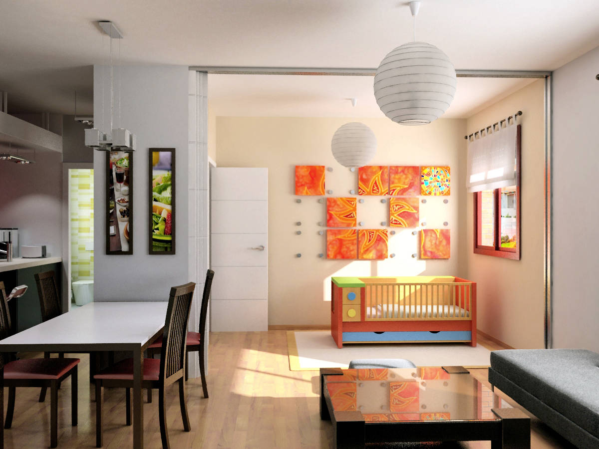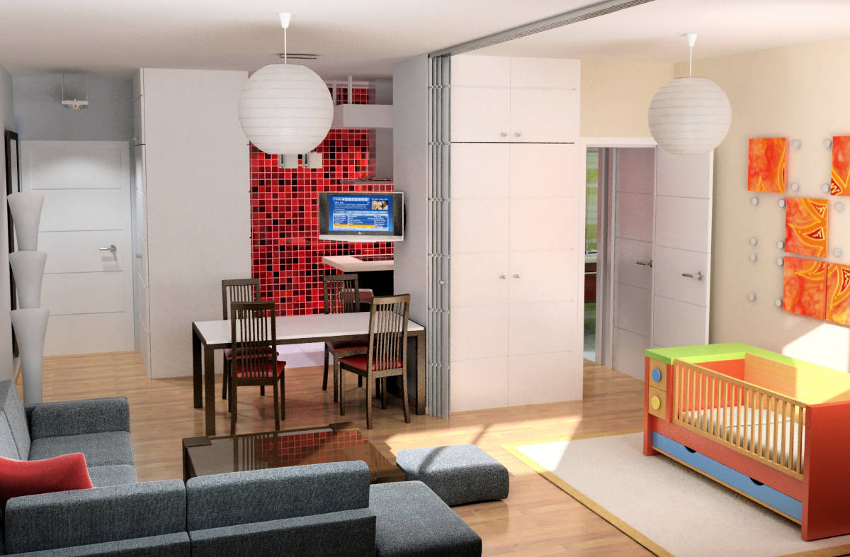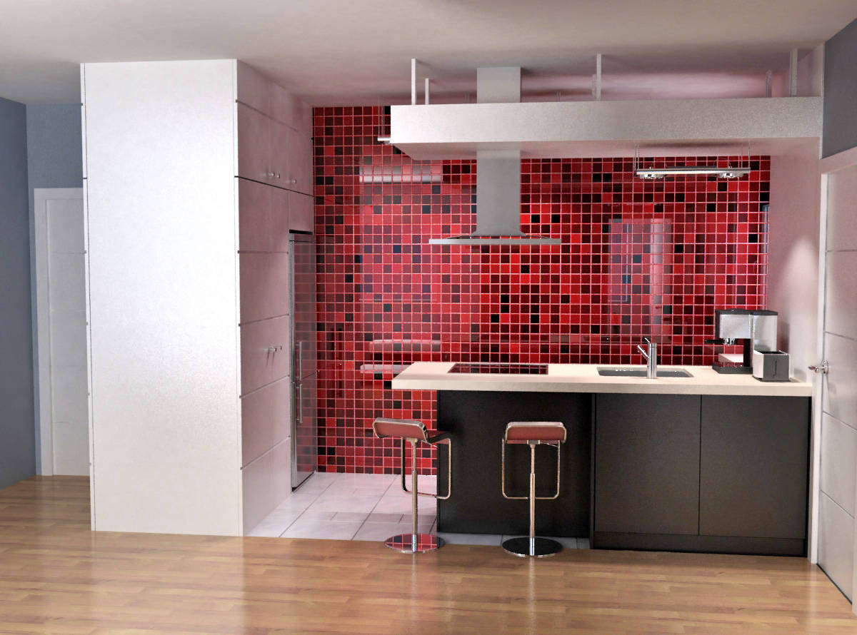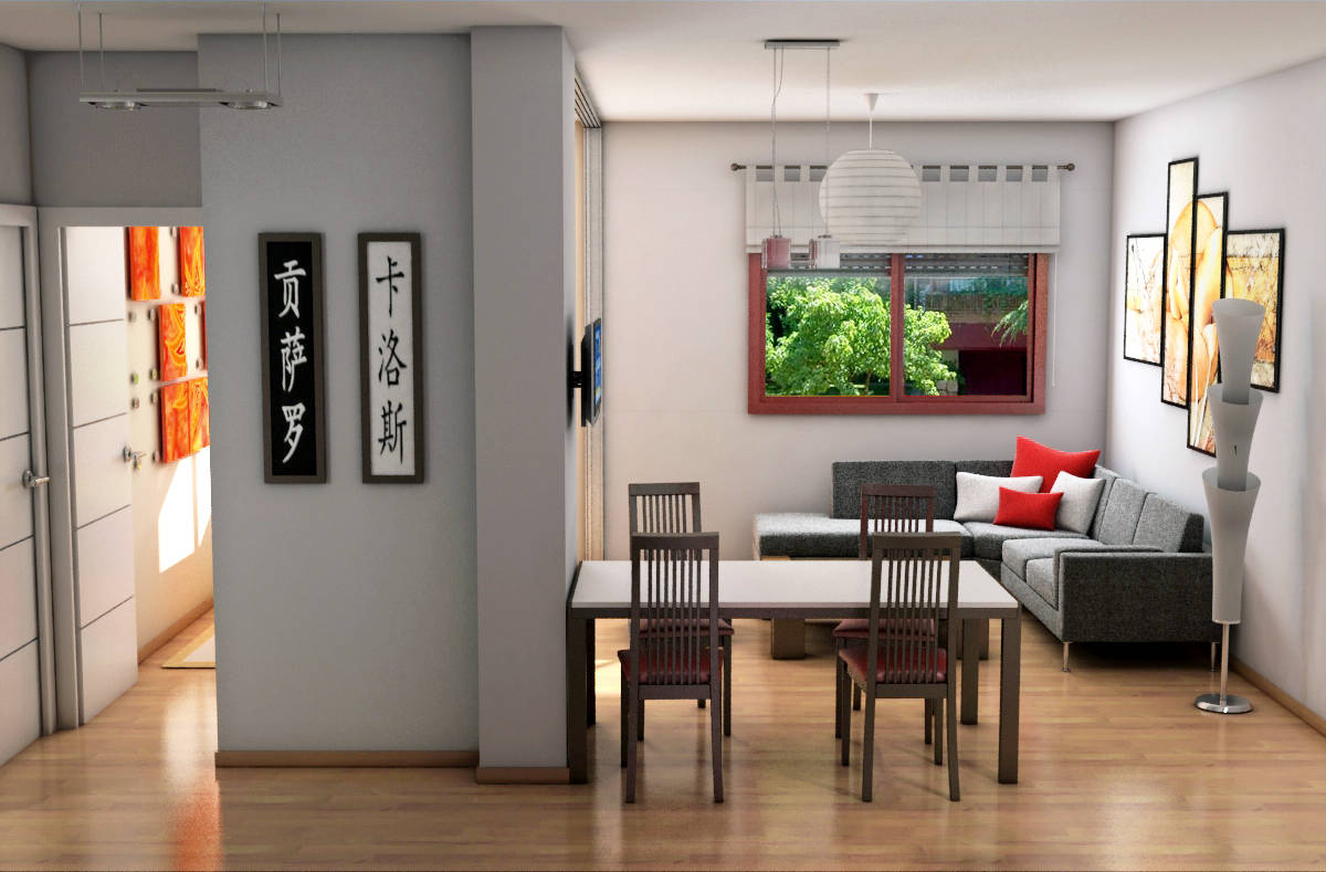 use of virtual images to renovate a flat in Madrid. Redesign of a small two bedroom flat to convert it in a more open one bedroom flat, with more spacious living room and kitchen.
