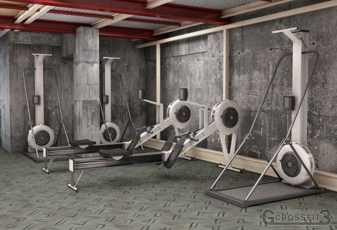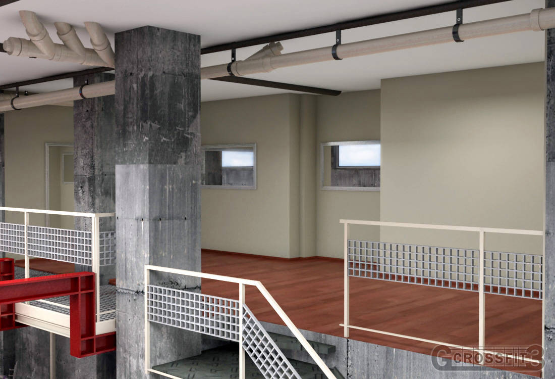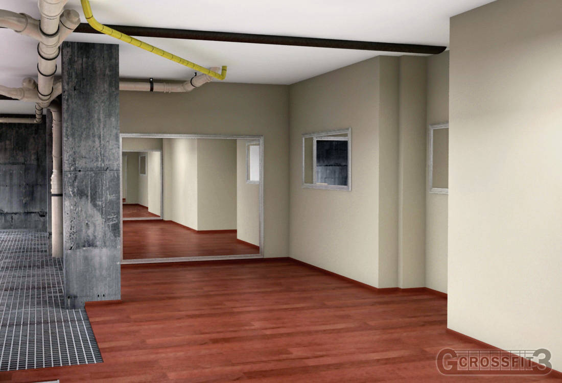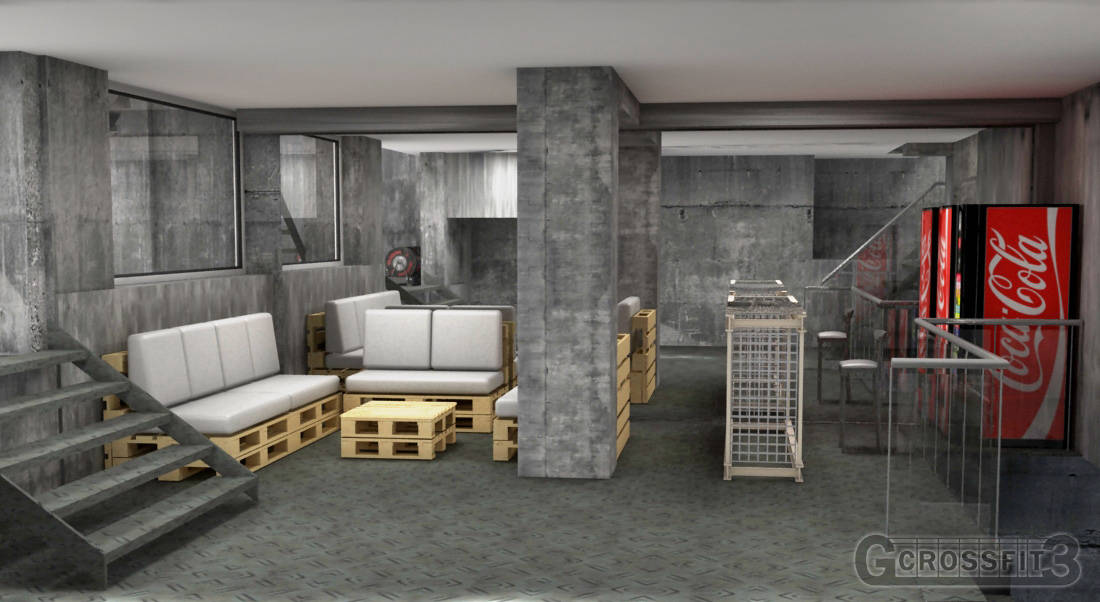 use of virtual images to renovate a Gym in Madrid. Redesign it to make it convenient for renting. Lots of options were considered. Cross Fit option is the one showed.